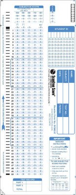 Form size 4 14 x 11 2 sided 100 Questions 5 Response Choices (A E) Student ID field (9 digits) Version ID (up to 4 tests) Subjective Scoring Area. Use SC882 E with Item Analysis Form 9700. Scantron Score & 888P compatible.